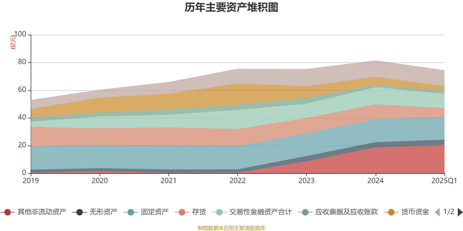 资产重大变化方面,截至2025年一季度末,公司其他非流动资产较上年末增加9.6%,占公司总资产比重上升4.59个百分点;存货较上年末减少40.4%,占公司总资产比重下降4.57个百分点;货币资金较上年末减少44.32%,占公司总资产比重下降2.75个百分点;固定资产较上年末减少1.37%,占公司总资产比重上升1.63个百分点。