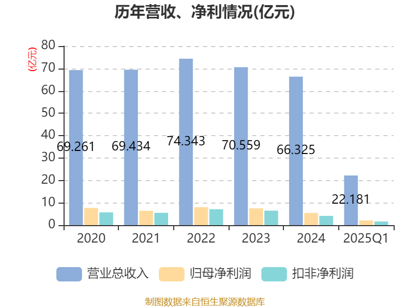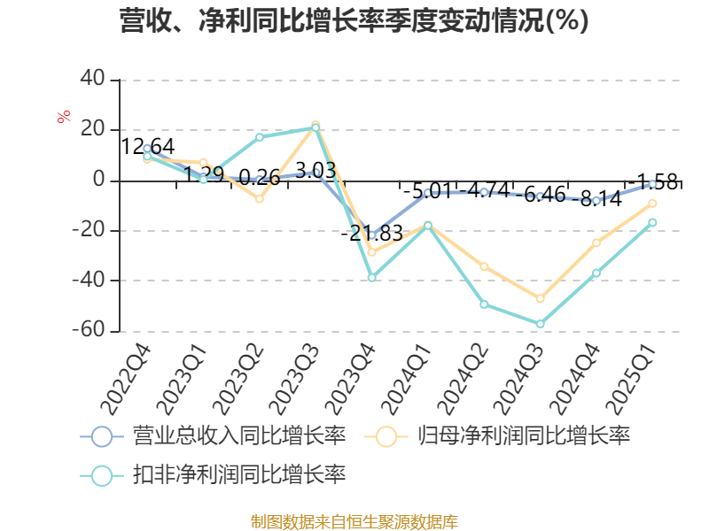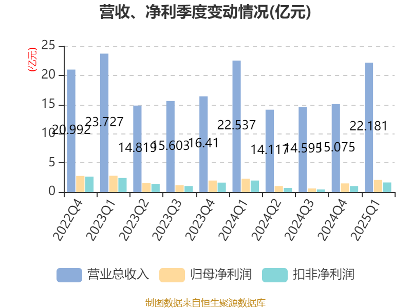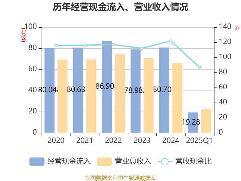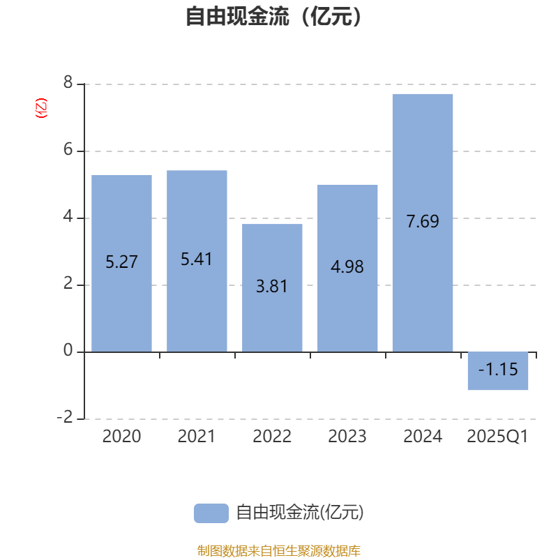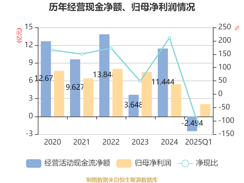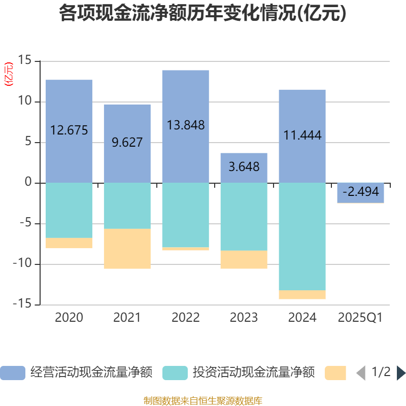 截至2025年一季度末,公司经营活动现金流净额为-2.49亿元,同比减少4.17亿元;筹资活动现金流净额-485.99万元,同比增加22.04万元;投资活动现金流净额259.77万元,上年同期为-5.41亿元。