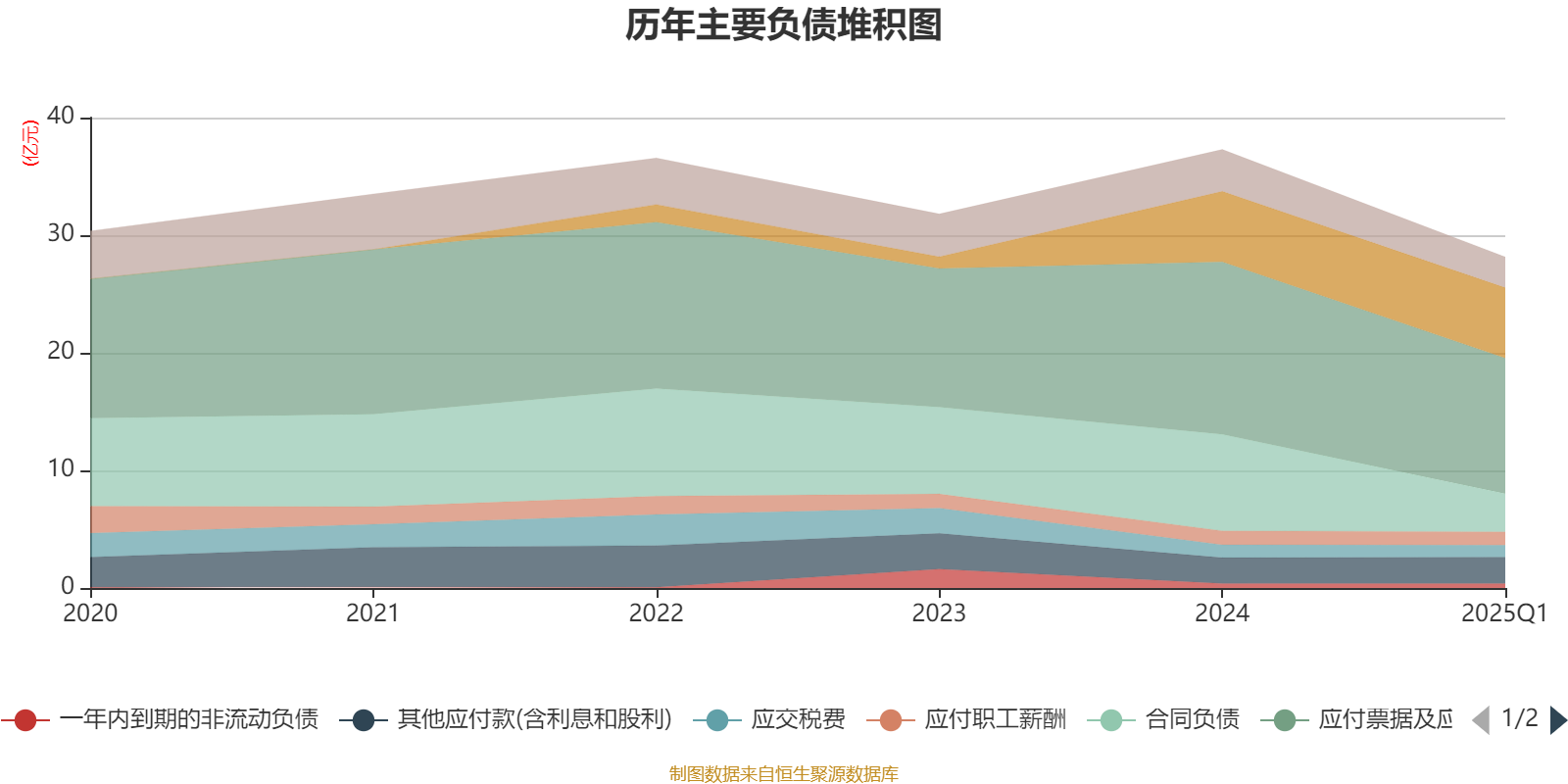 负债重大变化方面,截至2025年一季度末,公司合同负债较上年末减少60.41%,占公司总资产比重下降5.71个百分点;应付票据及应付账款较上年末减少21.49%,占公司总资产比重下降2.53个百分点;其他流动负债较上年末减少60.41%,占公司总资产比重下降0.74个百分点;短期借款较上年末增加0.09%,占公司总资产比重上升0.71个百分点。
