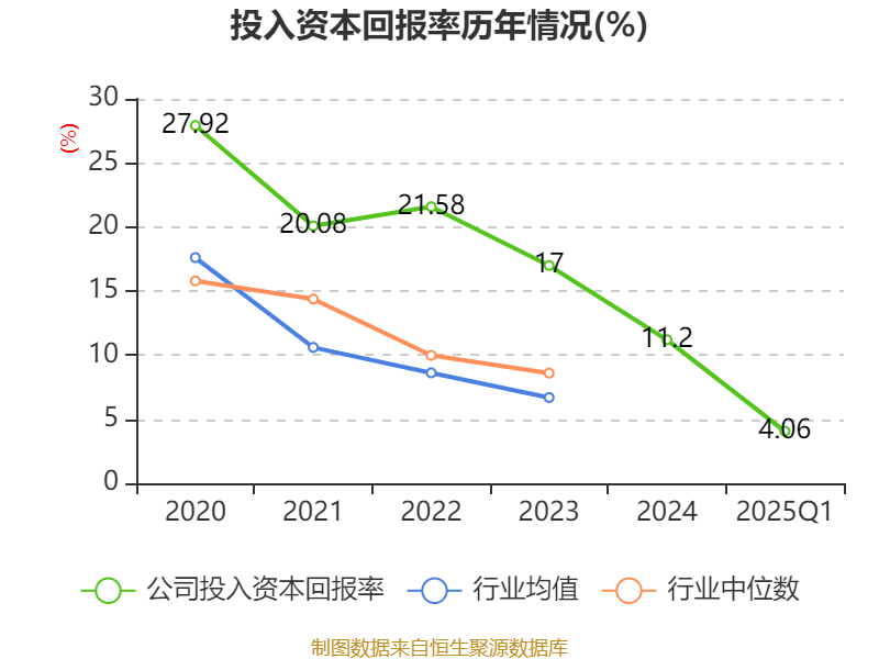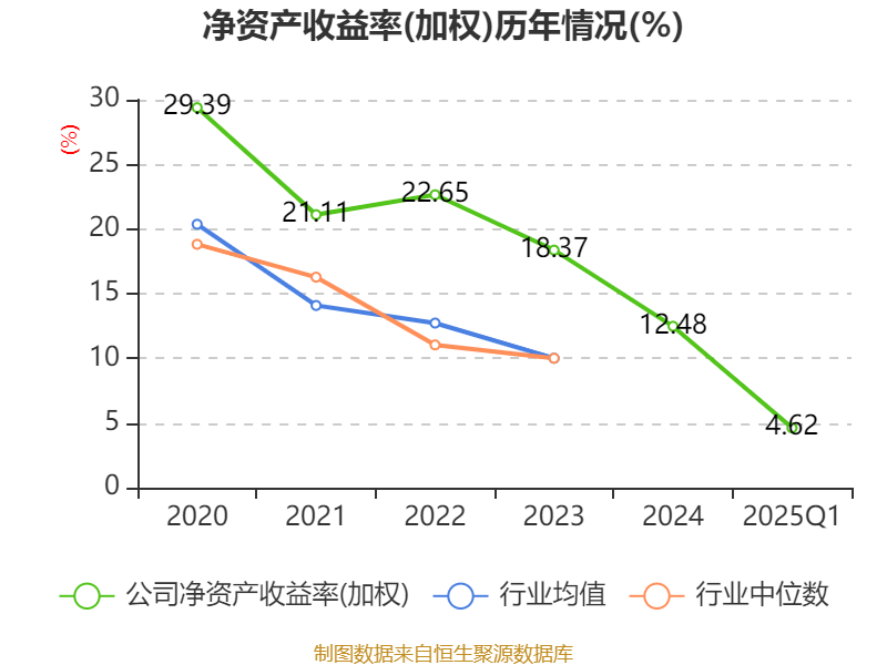 盈利能力方面, 2025年一季度公司加权平均净资产收益率为4.62%,同比下降0.54个百分点。公司2025年第一季度投入资本回报率为4.06%,较上年同期下降0.74个百分点。