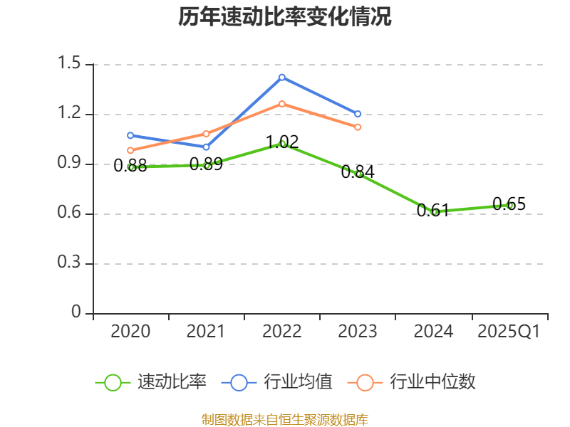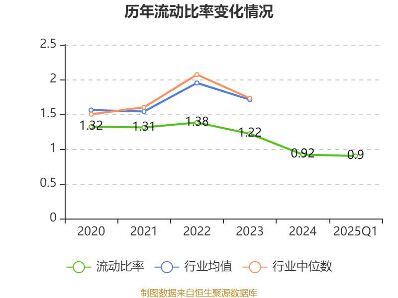 2025年第一季度,公司流动比率为0.9,速动比率为0.65。